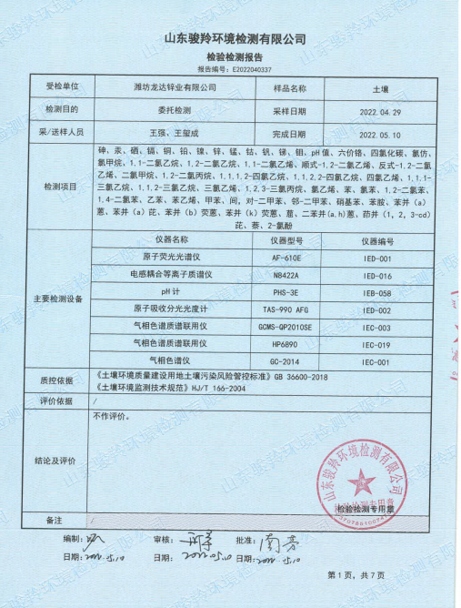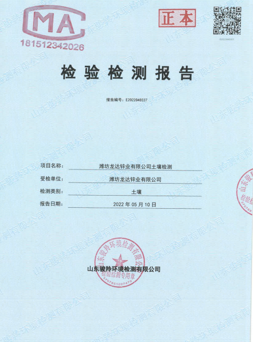 濰坊龍達(dá)鋅業(yè)有限公司2022年土壤監(jiān)測報告