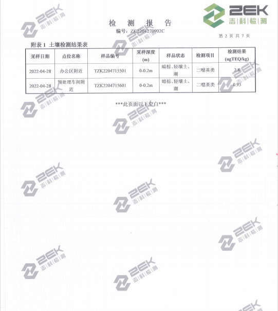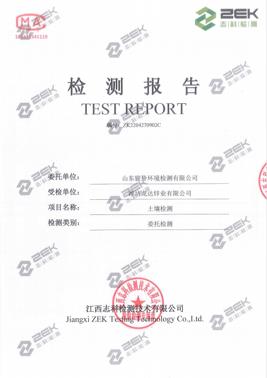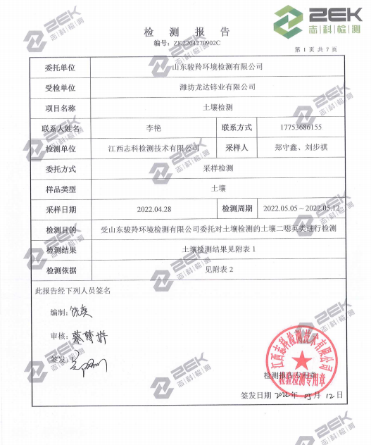 濰坊龍達鋅業有限公司2022年土壤監測報告